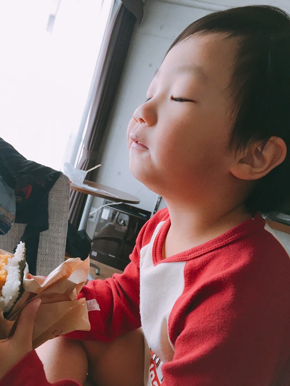 不過大概是得來容易,飯糰並不讓我覺得特別美味,倒是兩位還在發育的男子吃得頗開心就是~