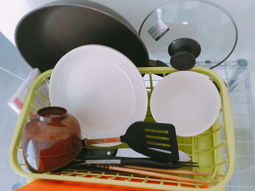 訂房時可以預約廚房用具(免費),飯店會準備一個箱子裡面有基本的平底鍋、刀子、碗盤、與筷子&湯匙,