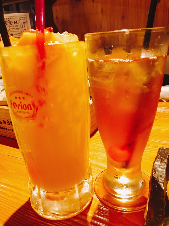 點了兩杯飲料,左邊的是芒果莎瓦,右邊是蜜桃紅茶沙瓦,左邊明顯好喝很多還有芒果果肉~