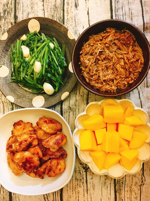 隨便再炒個青菜,補上一到雞肉料理與水果,就是豐盛又健康的一餐了~